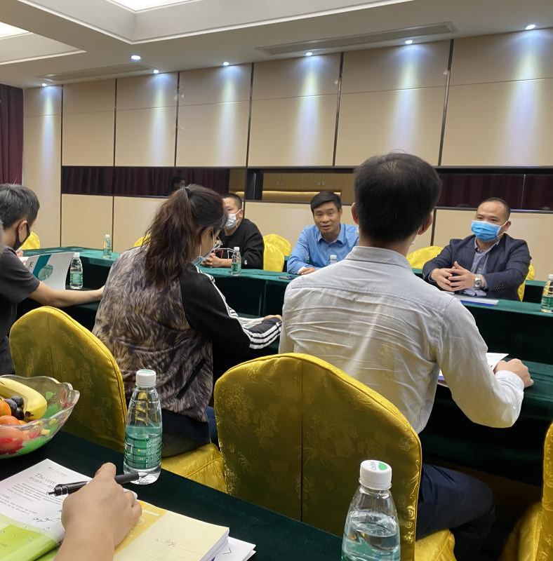上午,考察组一行首先前往中山住电新材料有限公司膜生产基地进行实地考察,听取了生产基地负责人对公司发展历史、制造规模、管理模式、经营业务、产品分类应用等方面介绍。接着,基地负责人带领考察组成员参观了膜丝组装生产车间,然后去膜丝拉伸区、注胶区、膜丝烘干区、膜架堆放区、组装调试区、包装区,详细了解了住友膜生产流程。